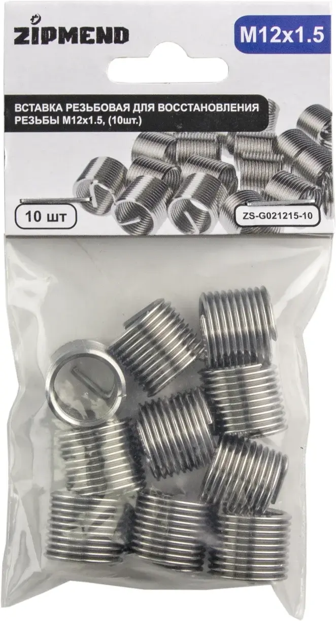 Вставка резьбовая для восстановления резьбы M12 х 1.5 мм., 10 штук, ZIPMEND, ZS-G021215-10.