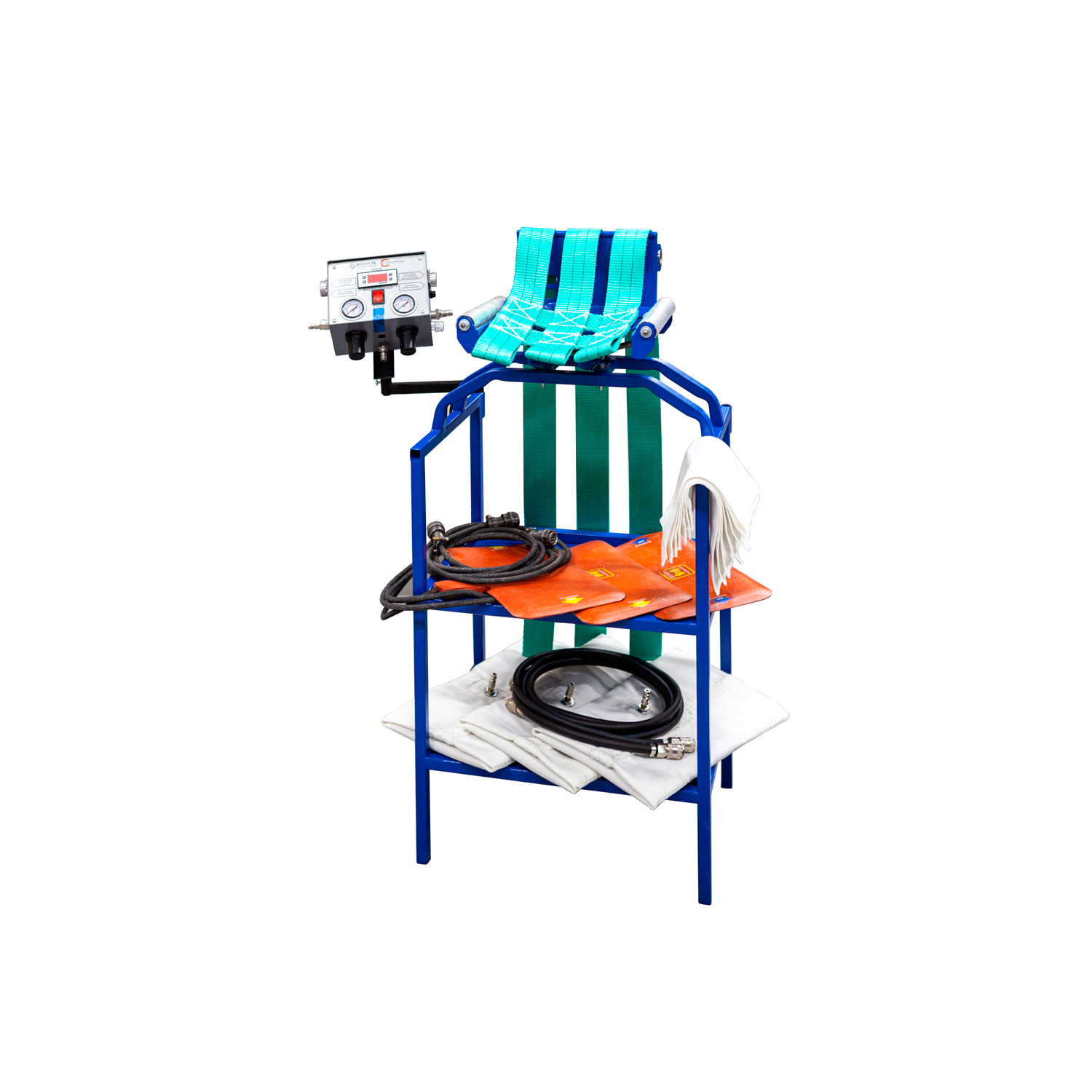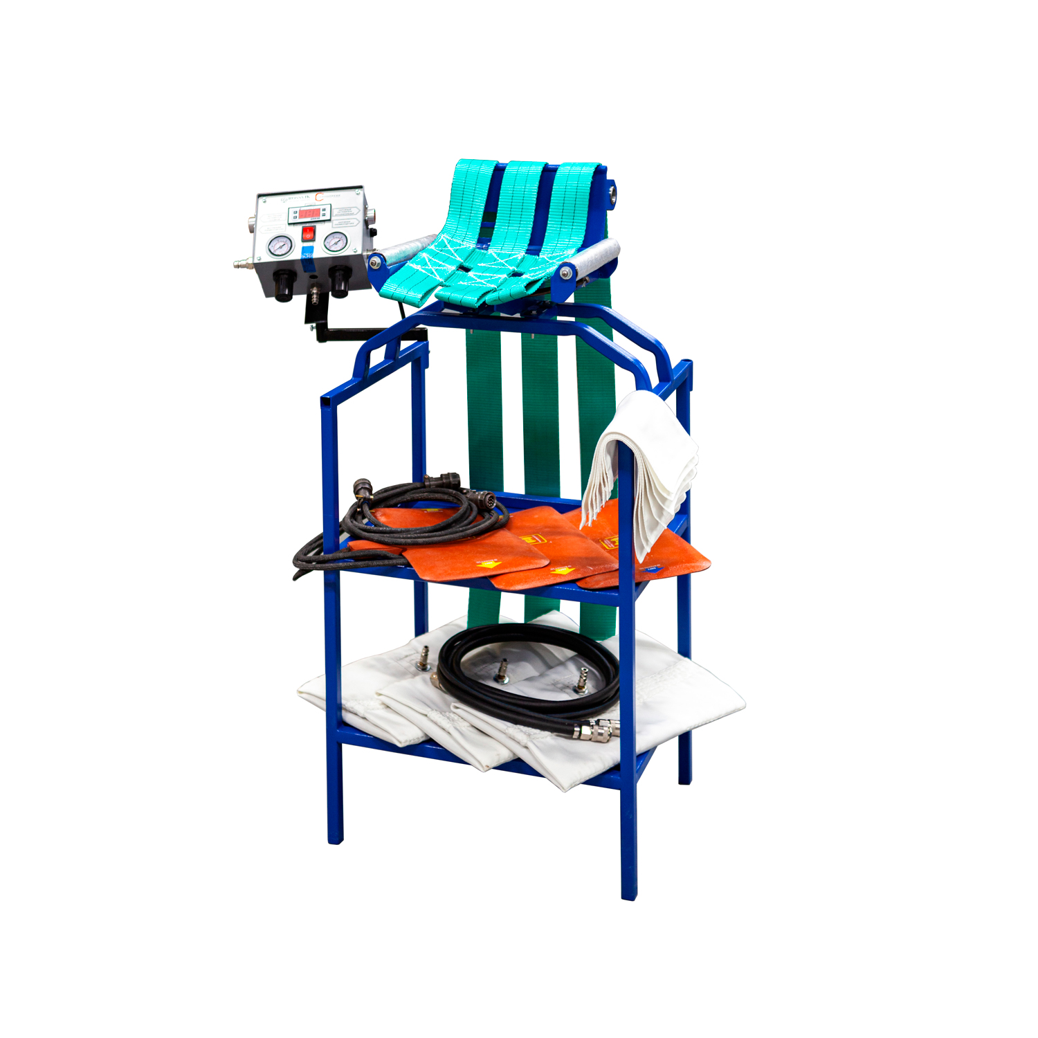 Пульт ТП-19 позволяет задать программу вулканизации с обратным отсчетом времени, установить рабочую температуру и давление в пневмоподушках.