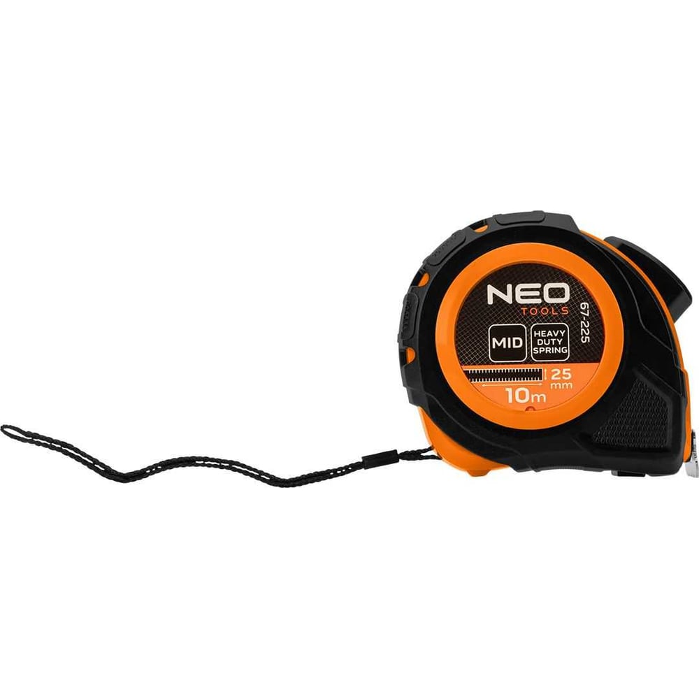 Выдвижная стальная рулетка NEO TOOLS 10 м, 25 мм, автоблокировка, две кнопки остановки 67-225