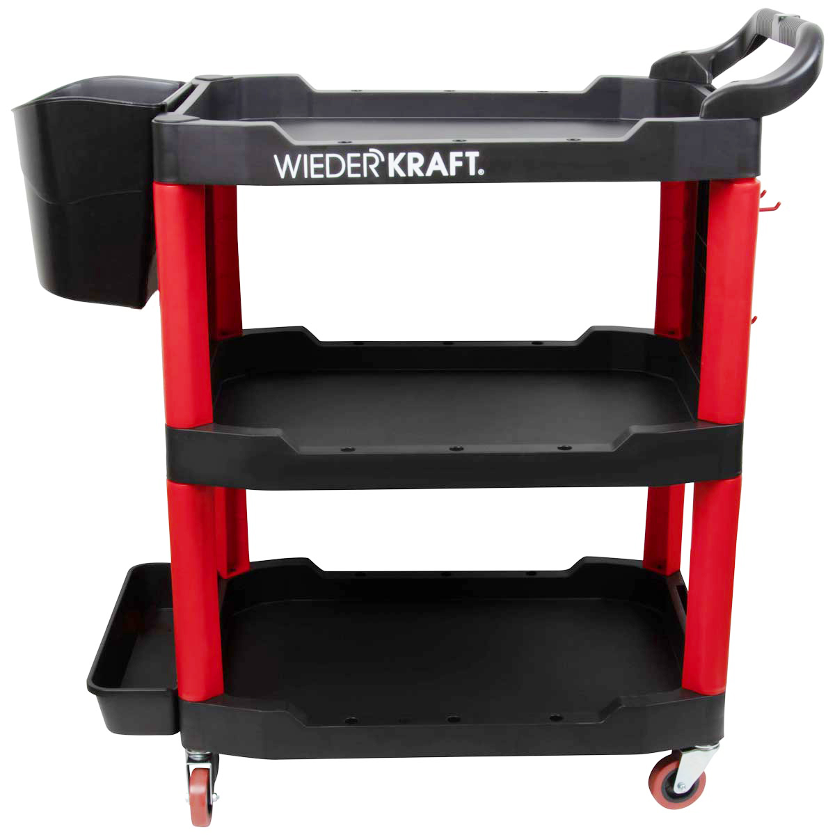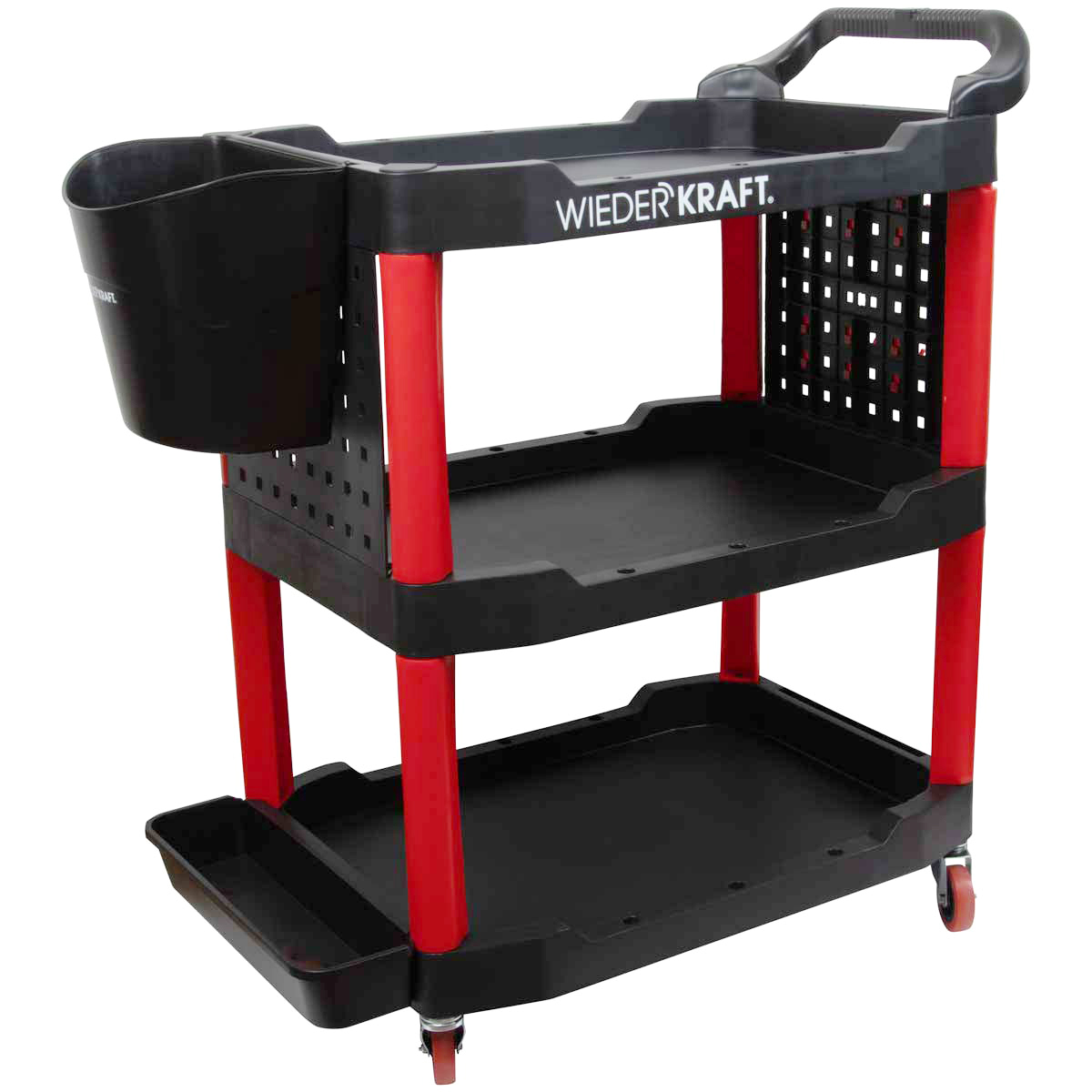 Тележка для детейлинга WIEDERKRAFT WDK-818 с тремя открытыми пластиковыми полками.