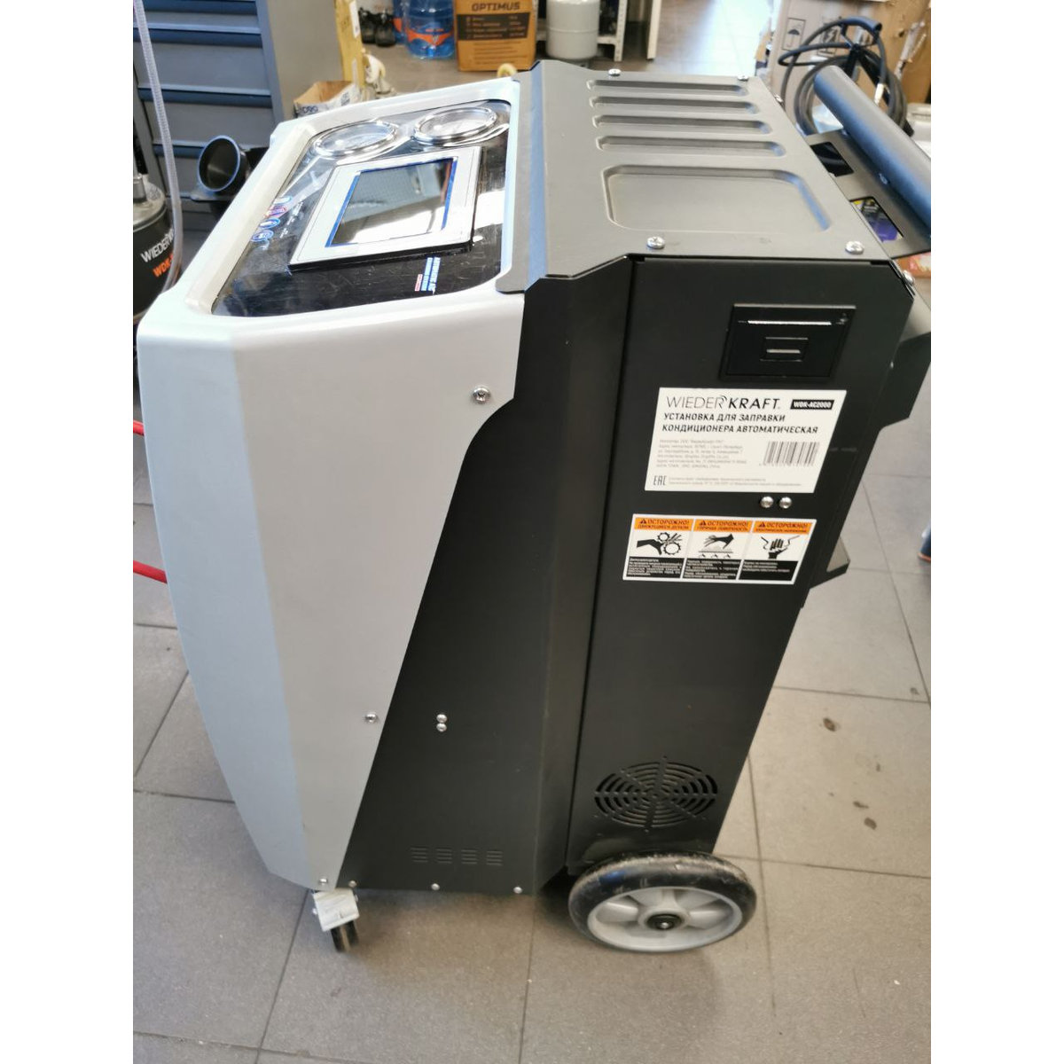 Автоматическая установка для обслуживания автомобильных кондиционеров AC2000. Металлический корпус с пластиковой передней панелью оснащен большими колесами в задней части и поворотными колесами в передней части. Панель управления с сенсорным дисплеем TOUCH HQ диагональю 8 дюймов и интуитивно понятным графическим интерфейсом управления делают работу оператора простой и понятной.