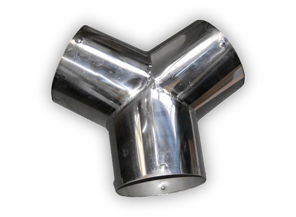 Тройники из нержавеющей стали для отвода выхлопных газов одновременно из двух выхлопных труб. Вес брутто: 0.535 кг Место 1 (ДхШхВ): 210х210х100 мм