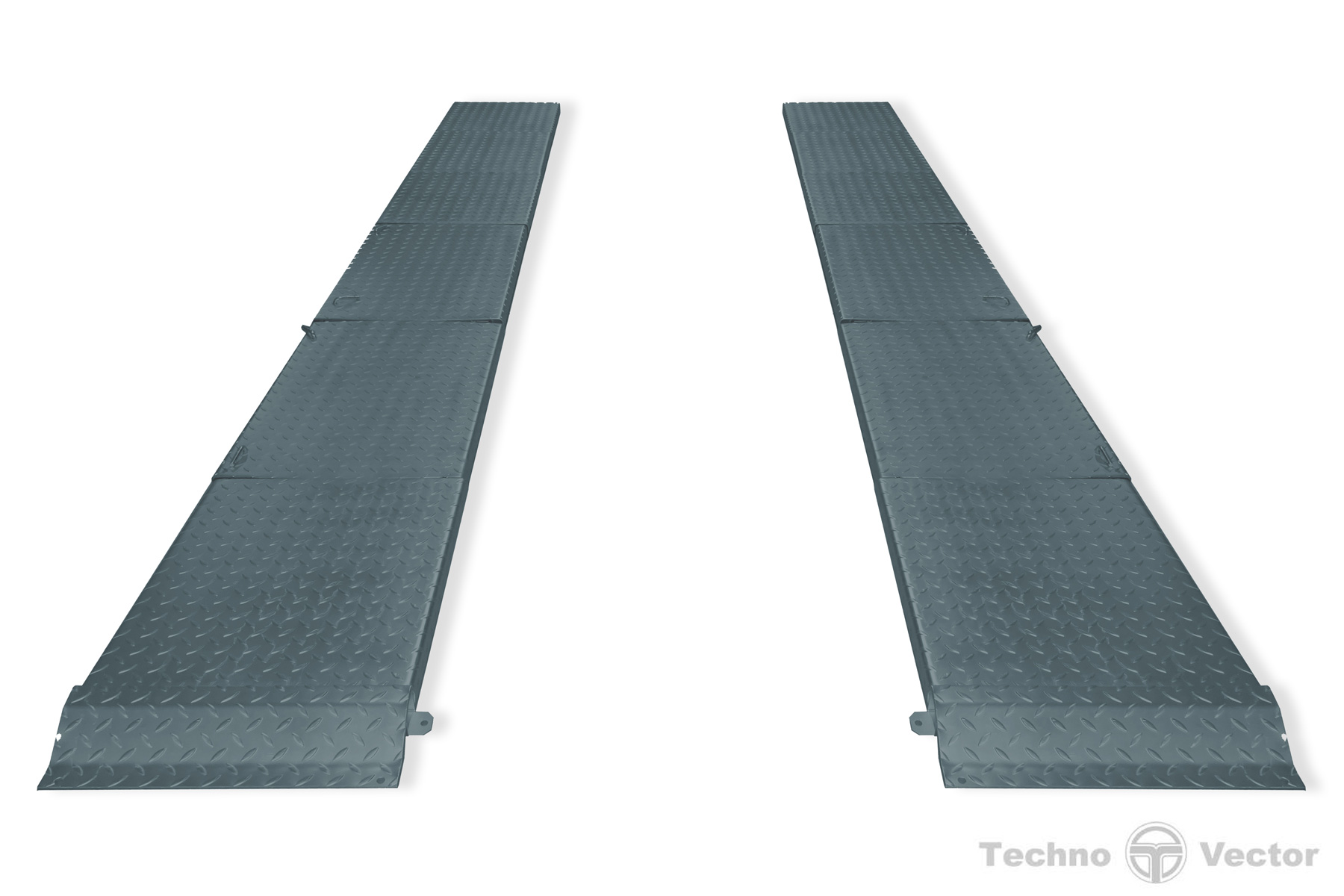 Ямные пути предназначены для регулировки углов установки колес легковых и небольших грузовых автомобилей, устанавливаются на горизонтально ровную поверхность и не требуют дополнительных строительных работ. Ямные пути для сход развала применяются в случае, когда нет возможности установить на рабочее место подъемник или сделать ниши для установки передних поворотных и задних сдвижных опор. Ямные пути ТехноВектор представляют собой модульную конструкцию, и, учитывая индивидуальные особенности рабочего места (ямы), модели стенда и моделей ремонтируемых автомобилей, можно выбрать и купить оптимальный вариант конструкции.