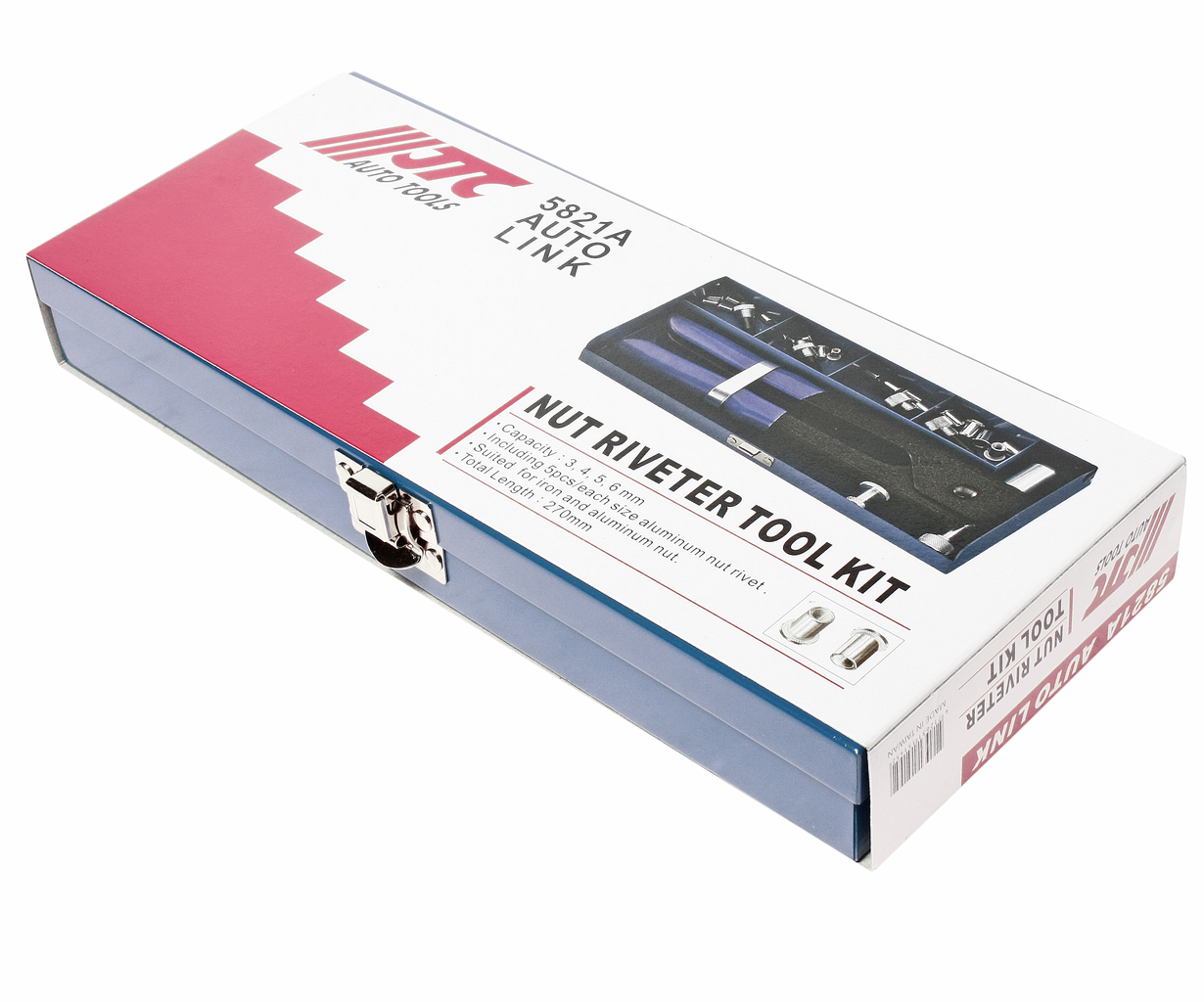 Заклепочник предназначен для работы с заклепками-гайками от М3 до М5 из стали, и от М3 до М6 из алюминия. Для работы заклепочника необходимо подобрать соответствующие заклепке шпильку и насадку. Например: для работы с заклепками-гайками М4 необходима насадка М4 и шпилька М4.
