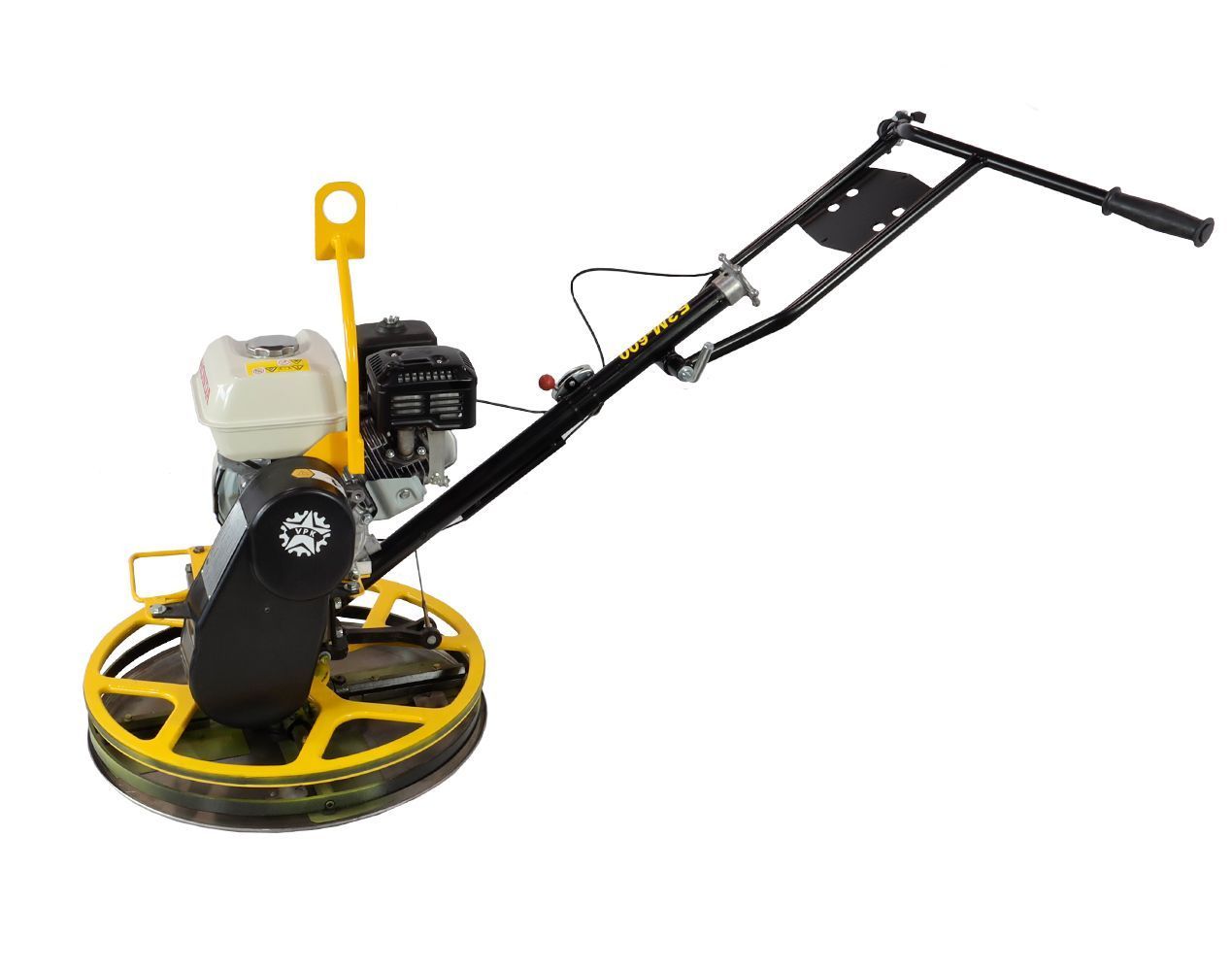Затирочная машина БЗМ-600 идеально подходит для обработки бетонных поверхностей на открытой территории. Работа с затирочной машиной безопасна для оператора, благодаря установленной системе автоматической экстренной остановки. Заглаживающая машина БЗМ-600 торговой марки VPK (ВПК) предназначена для механической обработки бетонных поверхностей в два этапа: грубая затирка с использованием диска и финишная с использованием затирочных ножей (лопастей). Данная модель укомплектована высококачественными затирочным диском и лопастями с идеальной геометрией. Ресурс диска составляет 1500 м2, а ресурс лопастей от 1000 м2. Принцип работы: бензиновый двигатель, установленный на несущей раме затирочной машины, приводит во вращение затирочные лопасти, при помощи редуктора. ОСОБЕННОСТИ затирочная машина оснащена мощным, оригинальным бензиновым двигателем легко управляется имеет настраиваемую отсоединяемую рукоять, что делает машину удобной для работы и транспортировки возможна регулировка по высоте снабжена защитной скобой, которая удобна и для зацепления лебёдкой, краном установлена центробежная муфта, позволяющая осуществлять плавный пуск, благодаря которому увеличивается срок службы двигателя и основных механизмов затирочная машина поставляется с затирочным диском и лопастями с повышенным ресурсом и идеальной геометрией ПОДРОБНЫЕ ТЕХНИЧЕСКИЕ ХАРАКТЕРИСТИКИ Модель VPK БЗМ-600 Мощность, кВт (л.с.) 4.3 (5.8) Скорость вращения двигателя, об/мин 3600 Скорость вращения лопастей, об/мин 130 Угол атаки лопастей, ° 0-15° Диаметр затирочного диска, мм 610 Масса (с диском/без диска), кг 60/52 Габаритные размеры в упаковке ДхШхВ, мм 1050х830х820 Рабочие габаритные размеры ДхШхВ, мм 1450х830х820