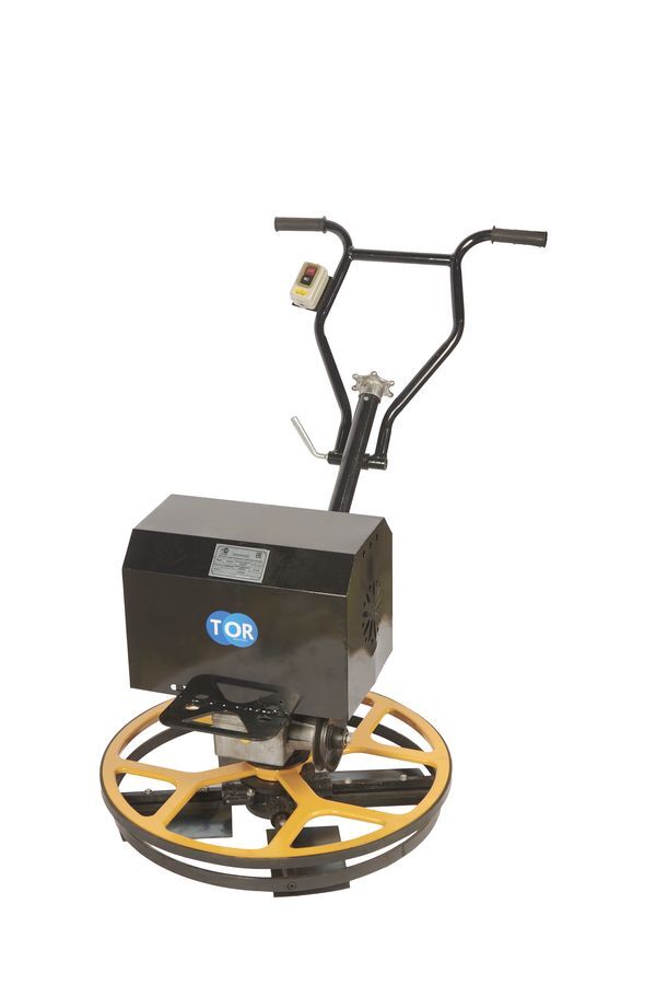 Затирочная машина электрическая TOR DMD 600 (E). Единственная модель, работающая от бытовой электросети 220В. Используется для освобождения бетонной стяжки от излишней влаги, втирания упрочняющих смесей и заглаживания поверхности. Машины с диаметром затираемой поверхности 590мм, благодаря своим компактным размерам, удобны при работе в углах, вдоль стен и колонн, в труднодоступных местах. Преимущества TOR DMR 600 - Стабильная работа от бытовой сети 220В - Подходит для работы в закрытых помещениях - Низкий уровень шума в сравнении с бензиновыми аналогами - Защитная решетка предохраняет оператора и прилегающие поверхности от повреждения вращающимися лопастями - Скорость вращения от 66 до 100об/мин позволяет работать с разными видами неровностей - Складная ручка для легкой транспортировки и хранения - Тяжелая конструкция обеспечивает плотный контакт лезвий и поверхности - Возможность регулировки наклона лезвий 0-15 ° позволяет проводить как грубую, так и финишную обработку бетонных поверхностей - Набор лезвий и заглаживающий диск в комплекте поставки