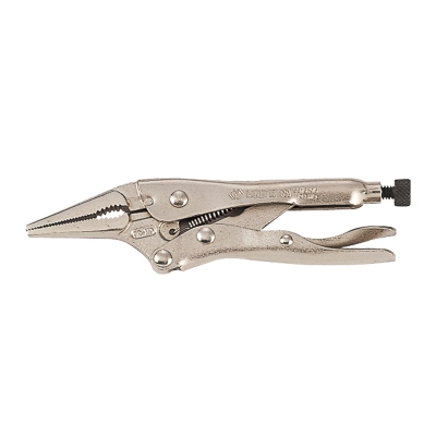 Зажим с фиксатором 221 мм, тонконосый KING TONY 6315-09 предназначен для крепкого захвата и удержания различных элементов.