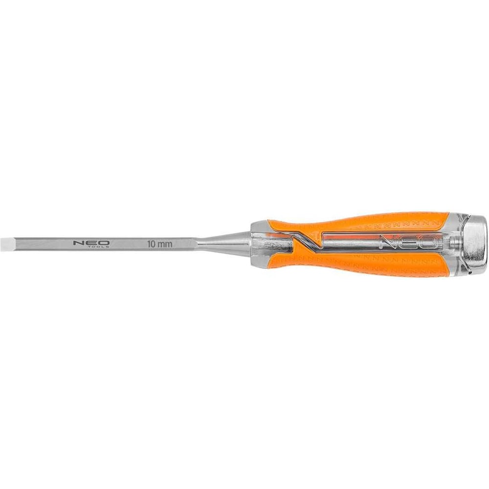 Зубило - это деревообрабатывающий инструмент с лезвием шириной 10 мм, которое изготовлено из прочной хром-ванадиевой стали. Двухкомпонентная ручка обеспечивает удобство использования и нескользящие свойства, а усиление от ударов защищает конструкцию от повреждений. Это практичный инструмент от бренда NEO для профессионалов и любителей DIY.